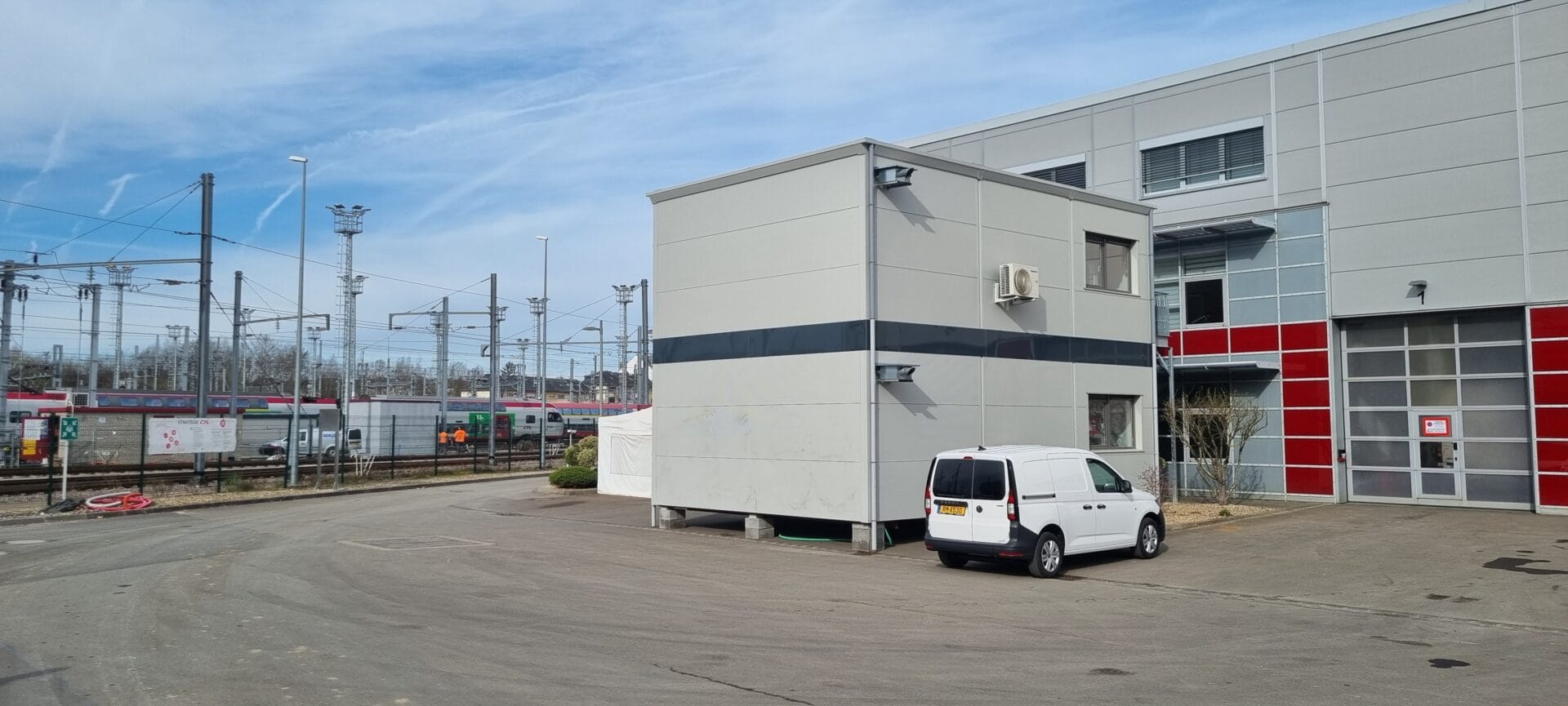 Fourniture et pose d’un ensemble de 2 espaces polyvalents de réemploi pour le compte des Chemins de Fer Luxembourgeois (CFL) à Bettembourg.