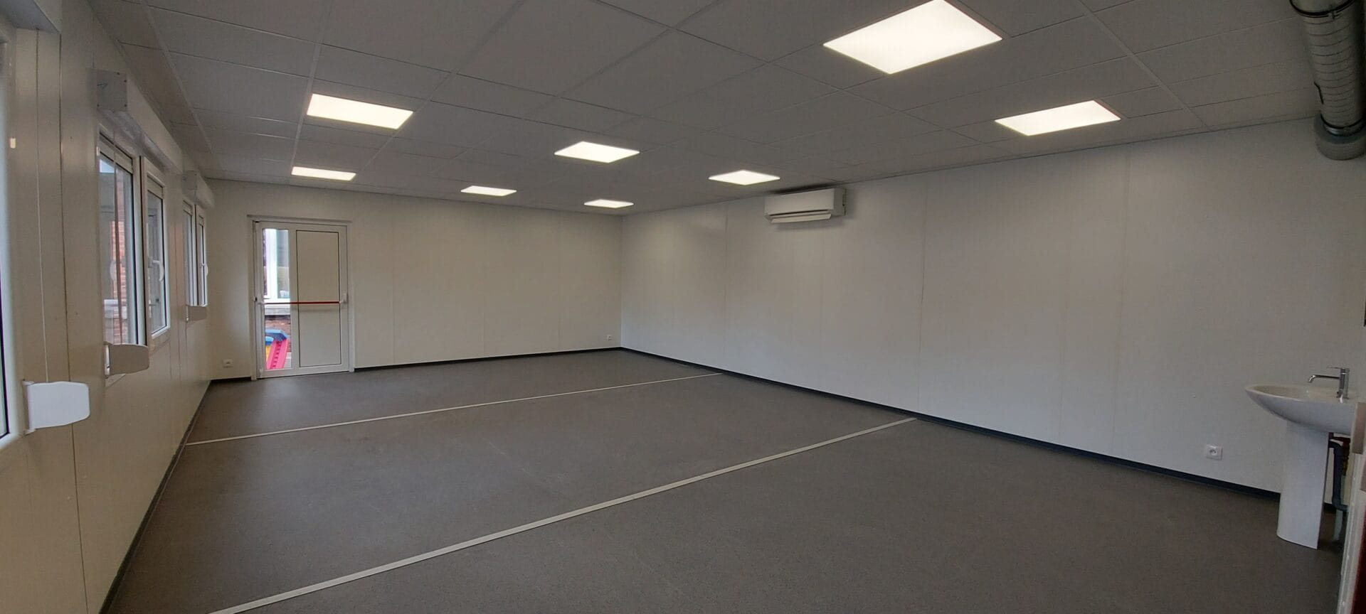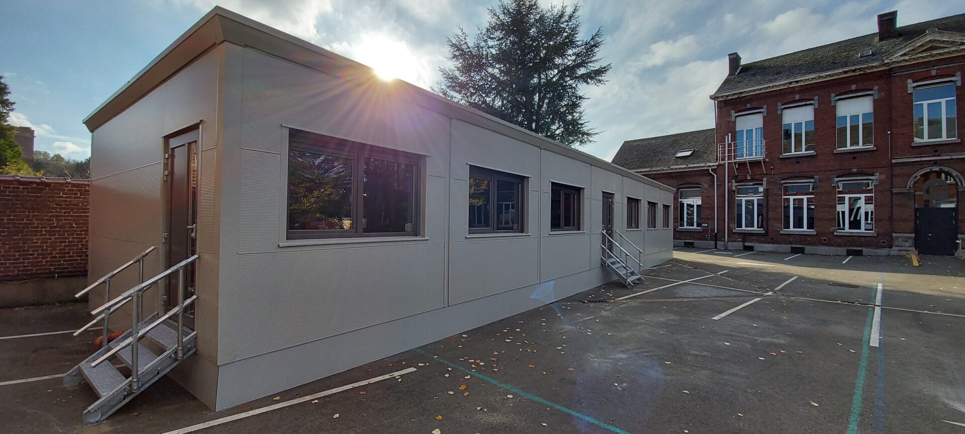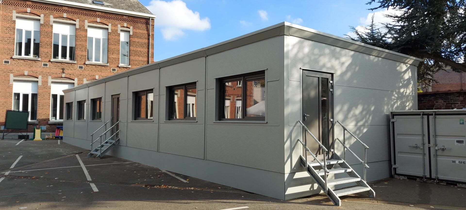 2 classes modulaires placées dans une cour de récréation tout confort
