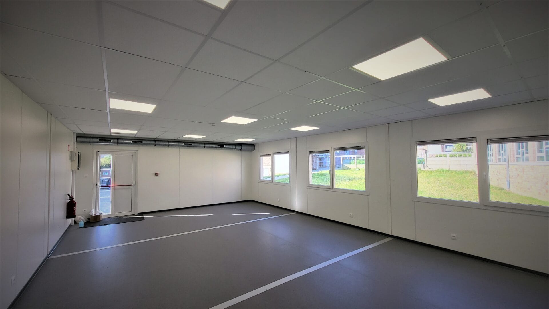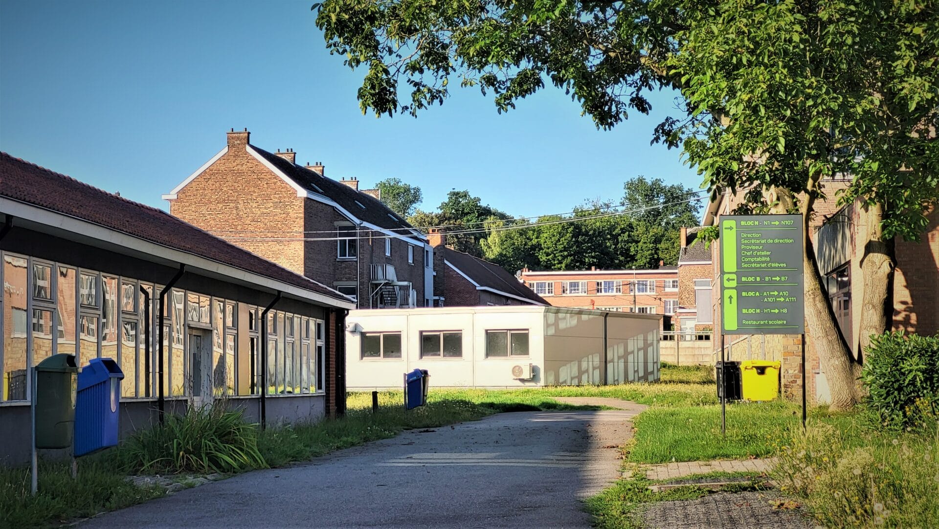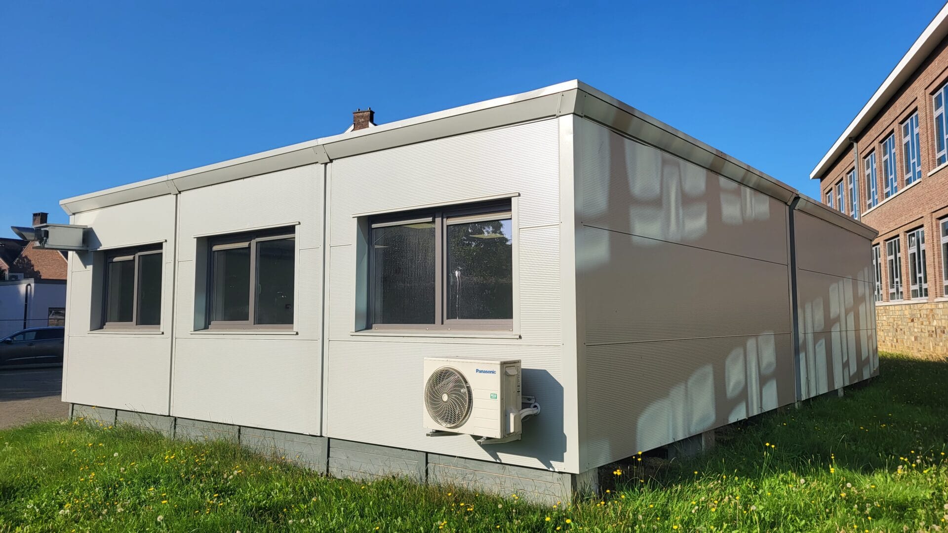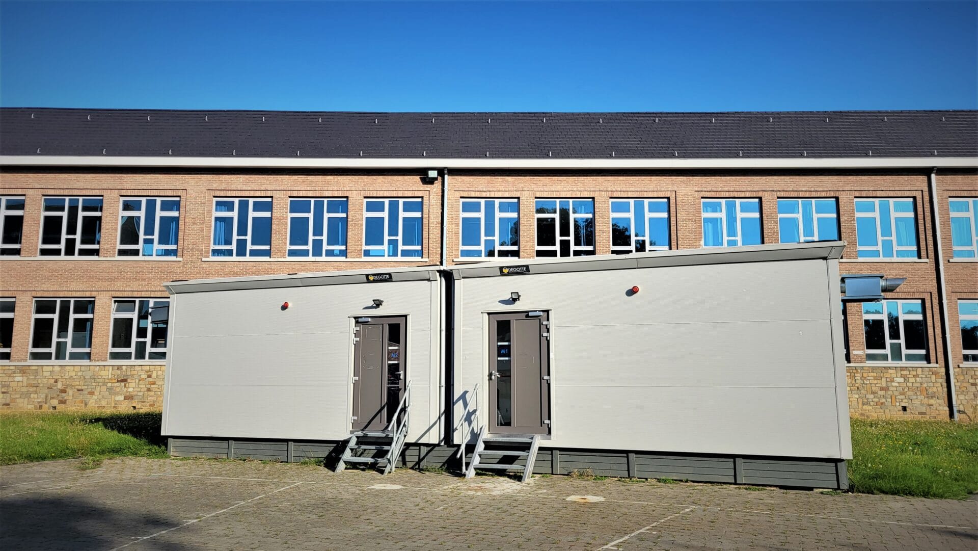 Installation de 2 classes modulaires tout confort à l’Athénée Royal de Hannut.